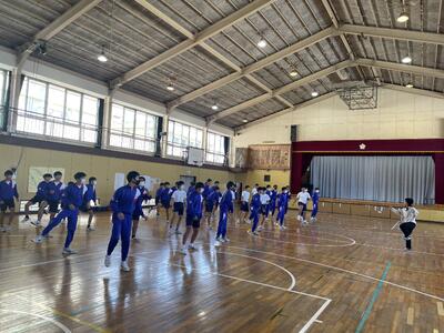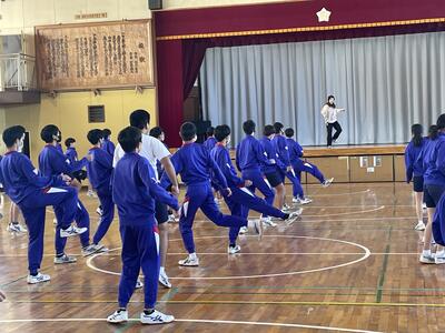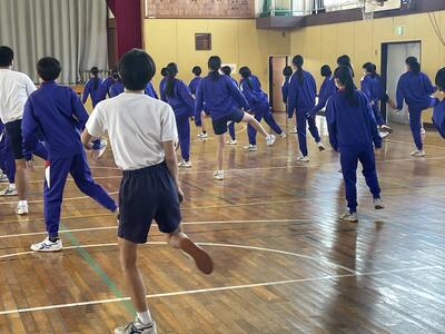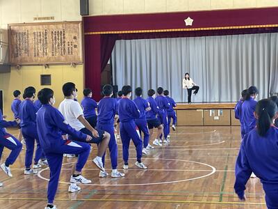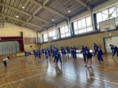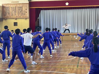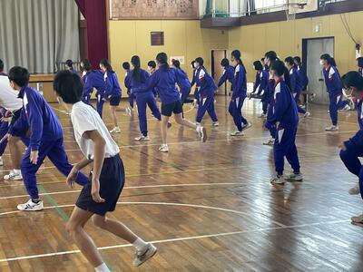 ここ数年,本校の体育の授業ではダンスの専門講師(特別非常勤講師)をお呼びしてダンス授業を行っています。1年生と3年生が対象でこの時期に,1つの曲を踊れるように頑張っています。
