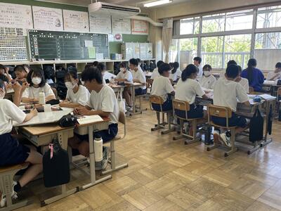 2年生にとってはとても古い話ではありますが,「国の発展を願って」オリンピック招致に尽力した和田さんのお話から,和田さんがなぜ「力を尽くした」のか,「人々の思いとは」などを,生徒たちで考えたり,グループで話し合ったりしていました。