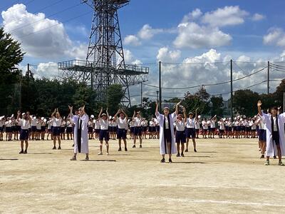 明日9月17日(日)に令和5年度体育祭が開かれます。短い期間の練習ではありますが,学級・学年・学校全体でまとまって練習や準備をしてきました。明日は,その成果を思う存分発揮してください!