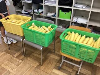 柏市大井の農家さんが大切に育てくださったトウモロコシは新鮮でとても甘く、ひと粒ひと粒味わって食べている生徒の姿が印象的でした。