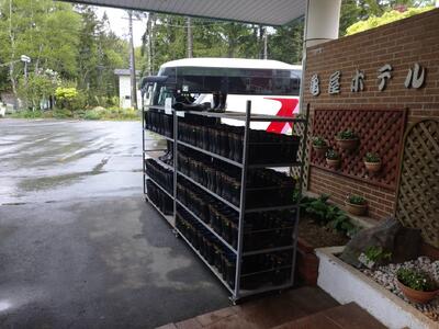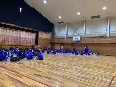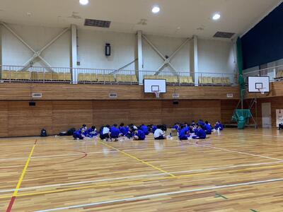 午前中の予定が少し伸びたとのことで,昼食を宿に併設される体育館でとりました。クラスごとにおにぎり弁当だったようです。