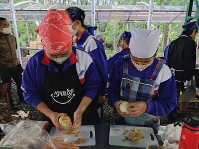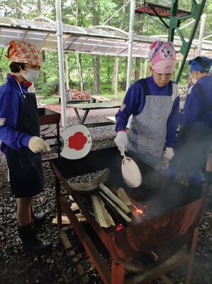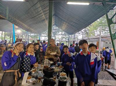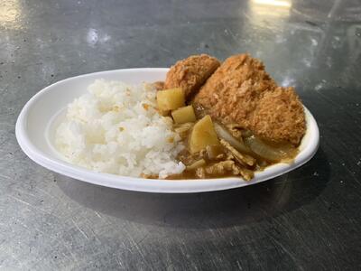 16時からスタートした飯盒炊爨。宿のご厚意で長靴をかりることがきできました。昨年度の清水公園での経験を活かして順調に行えたようです。火起こし係,ご飯係,カレー係と分担して準備をしました。美味しそうなカレー(カツ付き)ですね。19時から,レクとなります。林間学校2泊目の夜を楽しんでください。