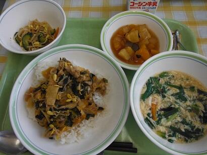 本日の給食(豚キムチ丼)