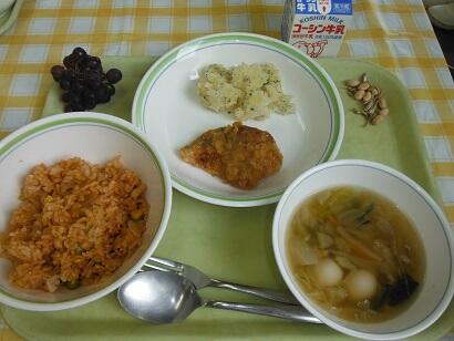 本日の給食(チキンピラフ)