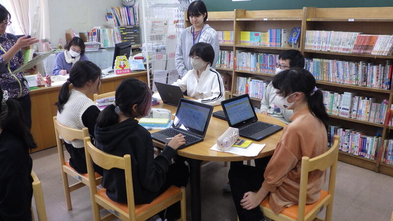 図書委員会ではすでに来年の企画を考えて動いています。PCを巧みに使っていますね。
