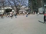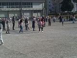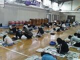 体育館の広いスペースで,長い書き初め用の用紙で今年度初めて練習しました。