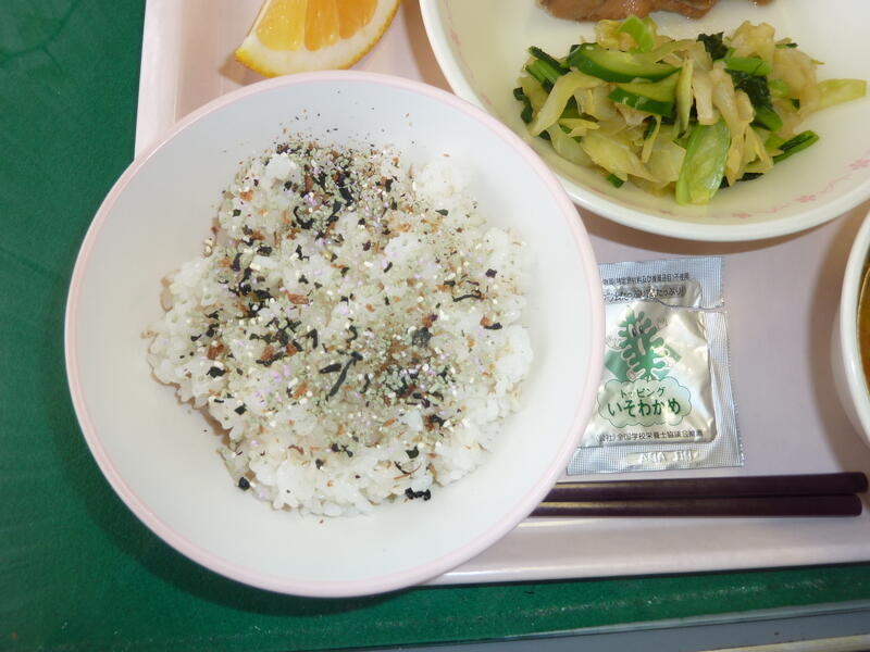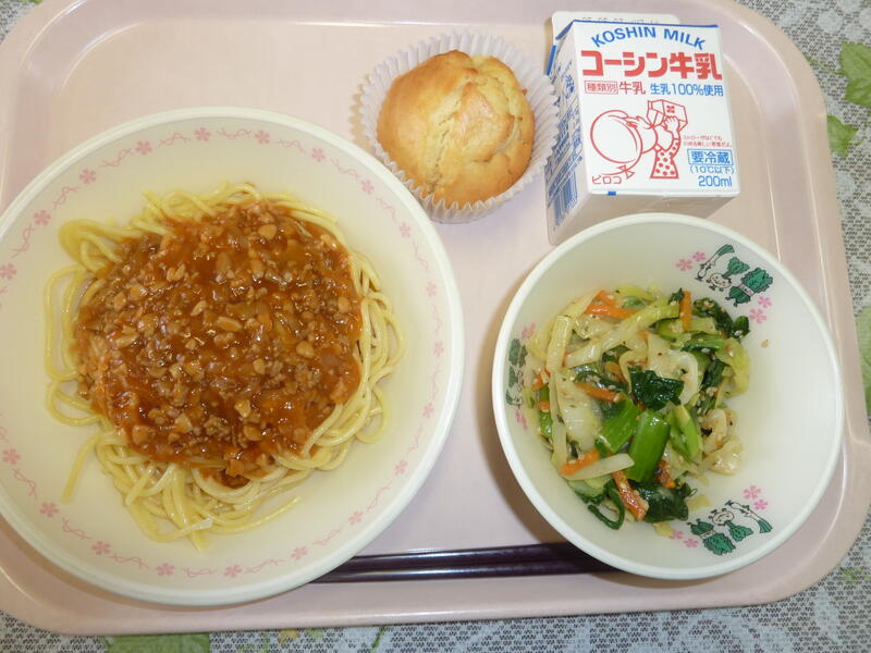 今日の給食は骨骨注意報が出ています。さわらの西京焼きの魚には骨が入っている可能性があります。