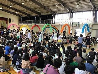 次は,5年生による「六小紹介クイズ」です。5年生が楽しくステージ上で