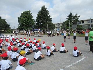 最後に全校児童を中央に集め,安全主任・校長から話をしました。