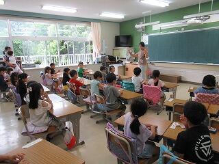 最初に1年生3クラスの授業の様子を参観していただきました。