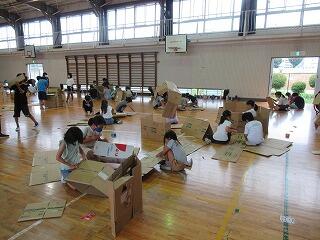 普段の教室の授業では味わえない,ダイナミックな造形活動を体験することができました。