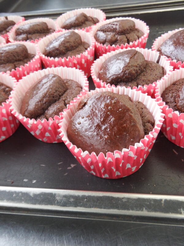 いつもとは違うハート柄の紙カップに入れて焼きました。