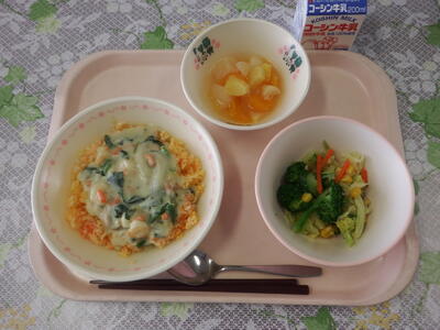 がいます。今日のメニューだと、主食とフルーツポンチはスプーンで食べます。