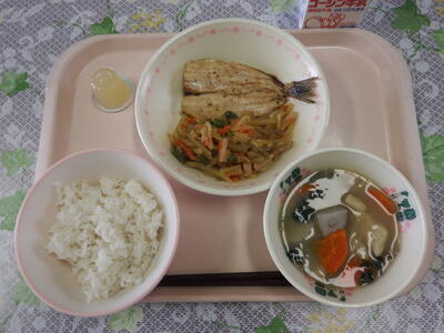 牛乳 ごはん いわしのさんしょう焼き じゃが芋のきんぴら