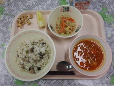 牛乳 きのこピラフ ゆで野菜のごまサラダ ミネストローネスープ