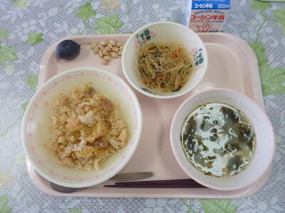 今日の給食はブルーベリージャムです。来週の月曜日の10月10日は