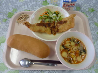 牛乳 コッペパン あなごフライ ハチミツ入りドレッシングサラダ