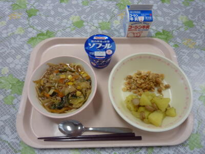 牛乳 味噌ラーメン ジャーマンポテト じゃこナッツ ヨーグルト