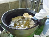 ごぼうを揚げている様子です。カリッとさせるため、少しずつ揚げました。