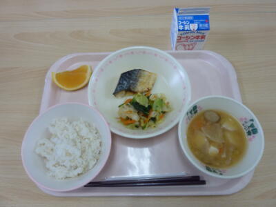 牛乳 ごはん さばの文化干し おかかあえ みそけんちん汁 美生柑