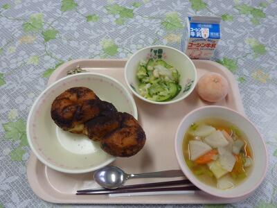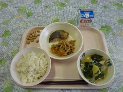 牛乳 ごはん ほっけの一夜干し 切干大根の旨煮 さつま汁 きなこ大豆