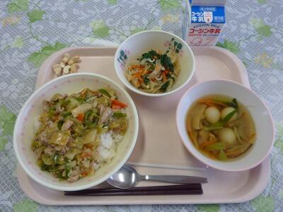 牛乳 回鍋肉丼 野菜のナムル 春雨スープ カシューナッツ
