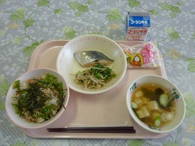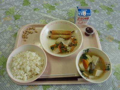 牛乳 ごはん ししゃものぱりぱり揚げ かぶのごま酢あえ 里芋の田舎汁 一口ぶどうゼリー 炒り大豆