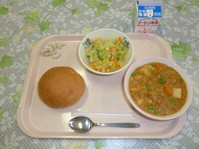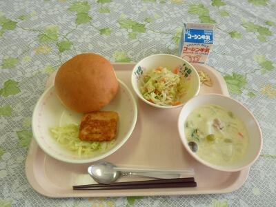 牛乳 丸パン チリコンカン コーンサラダ ミルクカシューナッツ