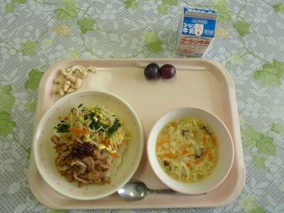 牛乳 ビビンバ 中華卵スープ 巨峰 カシューナッツ
