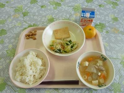 牛乳 ごはん いかの生姜焼き おひたし 豚汁 みかん きなこ大豆