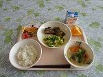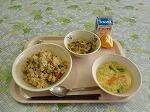 今日の献立は,手作り抹茶豆乳マフィンです。初めて出します。ホットケーキミックスにグラニュー糖,サラダ油,豆乳,抹茶を混ぜ合わせたものをマフィンカップに入れて焼いています。牛乳の代わりに豆乳を使っているので,ヘルシーです。