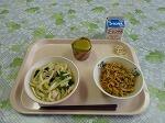 牛乳 ごはん 鰯の蒲焼き こまつなのおひたし えのきたけの味噌汁 炒り大豆