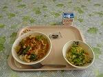 今日の献立は,ちゃんぽんです。ちゃんぽんは,長崎市で生まれた料理です。ちゃんぽんの歴史は,鎖国時代,唯一の開港地であった長崎の出島には独特な文化が生まれました。開国後の明治中期,中華料理店の店主が,当時日本を訪れていた,多くの貧しい中国人留学生に,安て栄養価の高い食事を食べさせるために考案されたと言われています。その後,留学生の間で人気となり,長崎に定着しました。