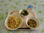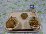 牛乳 地場産野菜のカレーライス コーンサラダ プルーン 炒り大豆