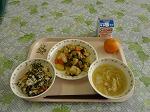牛乳 ごはん いかの照り焼き 三色あえ どさんこ汁 夢オレンジ 炒り大豆