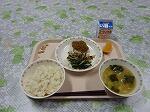 牛乳 ごはん 鯖のおろし煮 磯香あえ 豆腐とわかめの味噌汁 夢オレンジ 炒り大豆