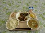 牛乳 ねぎとかぶのカレーライス ひじきと青大豆のサラダ プルーン 小魚