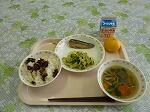 牛乳 ごはん 手作りふりかけ 鰯の甘露煮 ごまみそあえ たぬき汁 炒り大豆 みかん