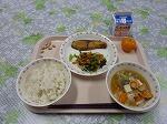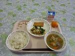 牛乳 ごはん いなだの照り焼き 磯香あえ みそけんちん汁 冷凍みかん 炒り大豆