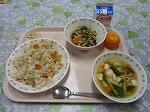 牛乳 五目チャーハン ほうれん草の五目炒め 豆腐の四川スープ 冷凍みかん アーモンド