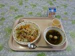 牛乳 中華丼 にらとうずら卵のスープ アップルゼリー アーモンド小魚