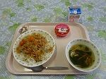 牛乳 豚キムチ丼 五目中華スープ アセロラゼリー 小魚カシューナッツ