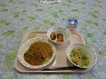牛乳 肉味噌そば ナムル 大学芋 アーモンド