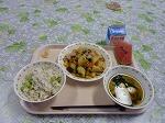 今日は15日が千葉県民の日なのにちなんで,千葉県産の食材を使ったメニューを出します。お米は柏市産,鰯のかば焼きの鰯は千葉県で獲れたもので,磯香あえのこまつなは柏市産,かぶの味噌汁のかぶも柏市産のものです。千葉県の恵みに感謝しながら食べましょう。