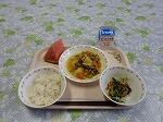 牛乳 ごはん カレー肉じゃが 磯香あえ すいか 大豆小魚