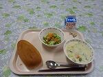 牛乳 はちみつパン アスパラシチュー にんにくドレッシングサラダ 大豆小魚