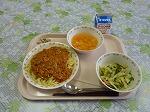 牛乳 スパゲティミートソース にんにくドレッシングサラダ フルーツポンチ 大豆小魚