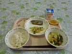 牛乳 ごはん さんまの甘露煮 きゅうりのレモンあえ じゃがいもの味噌汁 美生柑 炒り大豆