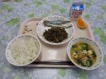 牛乳 ごはん ししゃも焼き 金平煮 えのきたけの味噌汁 清見オレンジ 炒り大豆