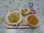 牛乳 カレーピラフ マセドアンサラダ ミネストローネスープ アセロラゼリー アーモンド